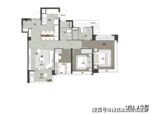 84㎡三房两卫:紧凑实用,赠送面积大,适合小家庭居住。