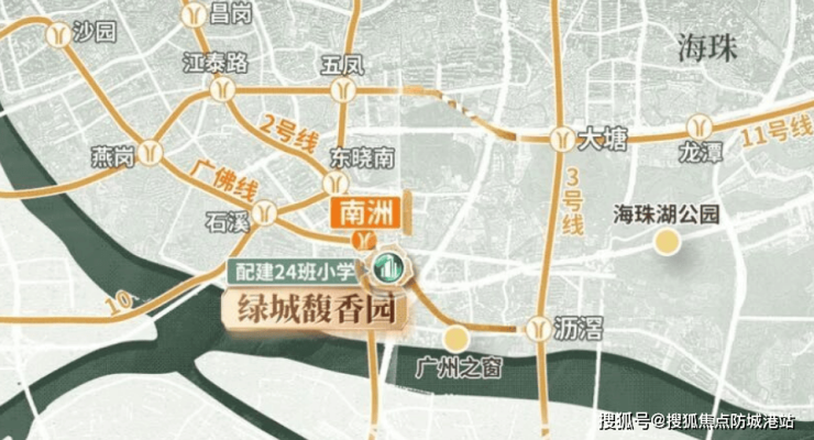 绿城馥香园地处海珠湾心,紧邻广佛线和广州地铁2号线交汇的南洲站,交通极为便利。通过地铁,居民可以快速抵达珠江新城、琶洲等重要商业区。项目地库与地铁站直通设计,使得业主们在风雨天气中也能便捷出行,这种贴心的设计在广州尚属首次。