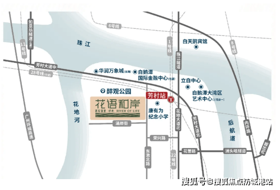 项目交通便捷度堪称 “白鹅潭通勤标杆”,步行 800 米即达 1 号线芳村站,该站为四线合一超级枢纽(1 号线已开通,11 号线、22 号线建设中,28 号线规划中),未来 0 换乘直达广州站、南站、白云机场。地面交通方面,花地大道与芳村大道交汇,3 公里内覆盖珠江隧道、洲头咀隧道等 4 条隧道,接驳内环与环城高速,半小时可达珠江新城商圈;1 公里内还有芳村码头,S2、S6 水上巴士航线串联广州塔、海珠等区域,滨水出行体验独特。