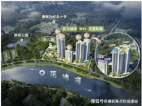 生活配套成熟,1 公里内有在建的 26.9 万㎡万象城(白鹅潭核心商业),500 米可达凯怡大厦、花地人家商业中心,日常购物、餐饮需求轻松满足;医疗方面,200 米即达广东省中医院芳村医院(三甲),1.7 公里有广医附三脑科医院(三甲),健康保障无忧。生态资源得天独厚,北侧距花地河仅 50 米,东侧紧邻 3.6 万㎡醉观公园,茶余饭后漫步河畔、游园赏景,尽享滨水宜居生活。