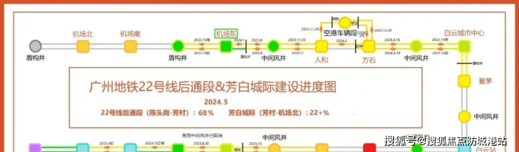 22 号线建设中,二期在建完成68%,开通后可直达白云机场,出行办公旅游都比较方便;