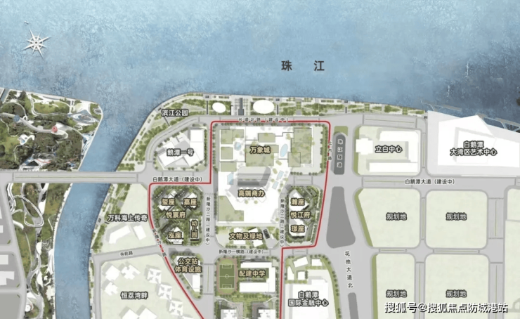在广州十四五规划,白鹅潭定调为五大世界级商圈,项目沿江一带打造白鹅潭沿江总部经济带