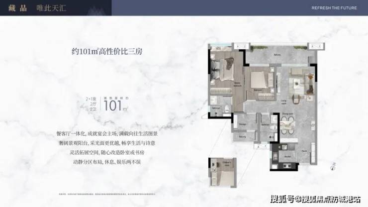 109㎡三房:得房率78%,采用LDKB一体化设计,阳台进深2.1米(比竞品宽20%)。