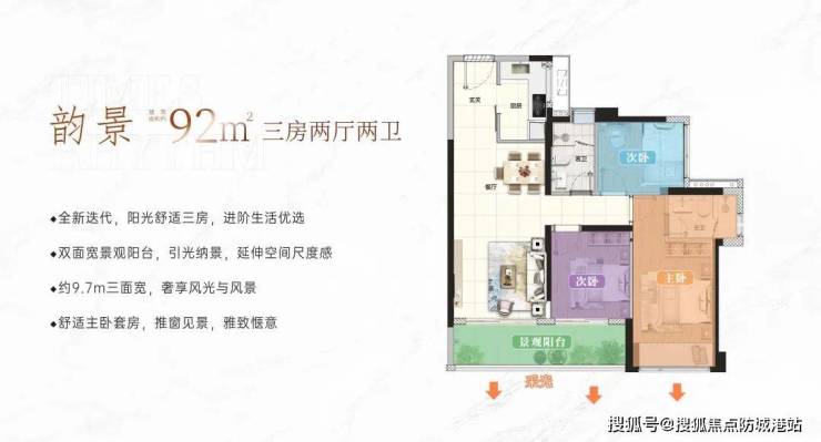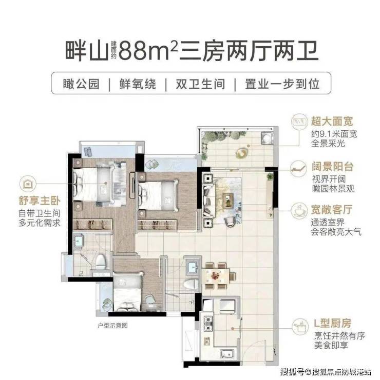 建面约92㎡三房两卫,舒居优选·阳光生活空间