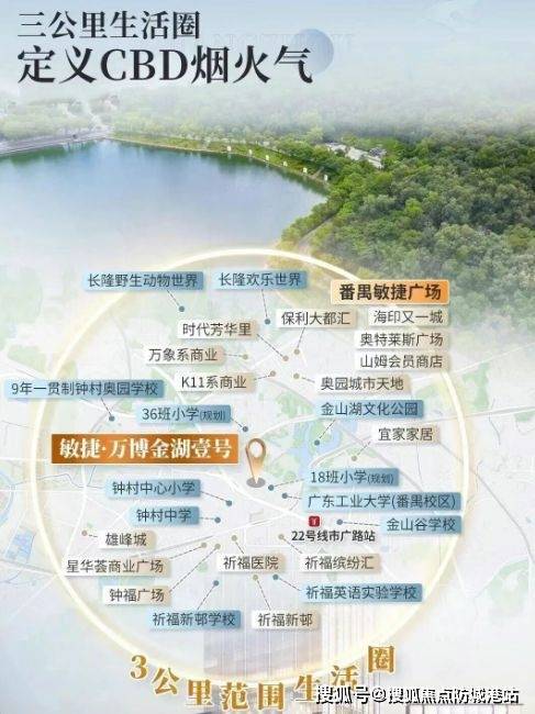 敏捷·万博金湖壹号地处广州市番禺区,紧邻108.7万平方米的金山湖文化公园,享有得天独厚的一线湖景资源。项目位于市广路地铁站附近,距离万博CBD仅一站之遥,交通便利,生态与繁华兼得。这里不仅是企业聚集的核心区域,还拥有繁荣的商业群,是广州南部发展的前沿阵地。