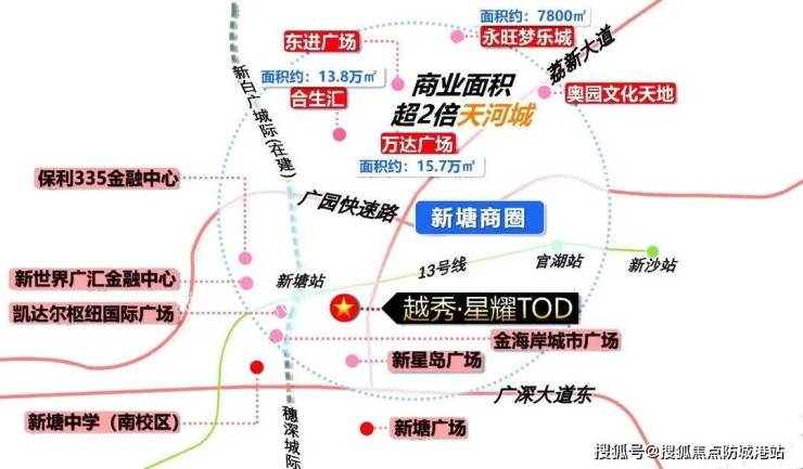 周边环绕建面超300万㎡规模的8大商业中心,包括已开业的金海岸城市广场、永旺梦乐城、新塘万达广场等,未来还将迎来保利335金融中心商业、新世界广汇天地等高端商业的进驻。