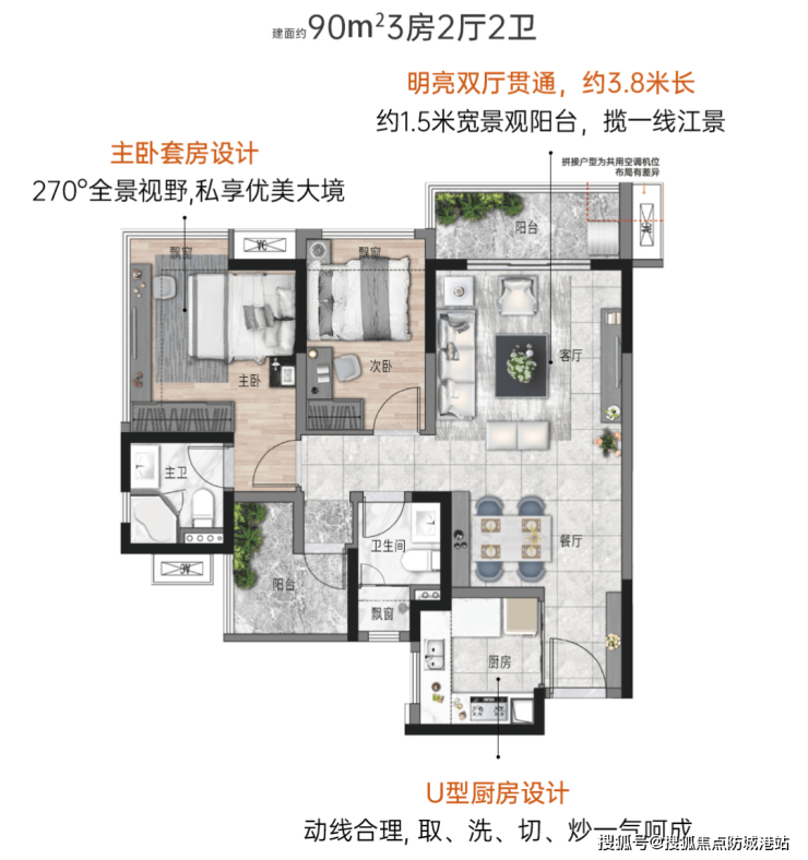 美的·东樾湾推出的产品主要包括85㎡、95㎡三房和105㎡、125㎡四房等多种户型,满足了从刚需自住到改善自住等不同购房人群的需求。每个户型均注重空间利用效率和居住舒适度,特别是0.26优越窗地比和270°景观飘窗的设计,让住户在家就能欣赏到难得的园林风情。这样的设计既提高了居住的舒适性,也为日常生活增添了更多的乐趣。