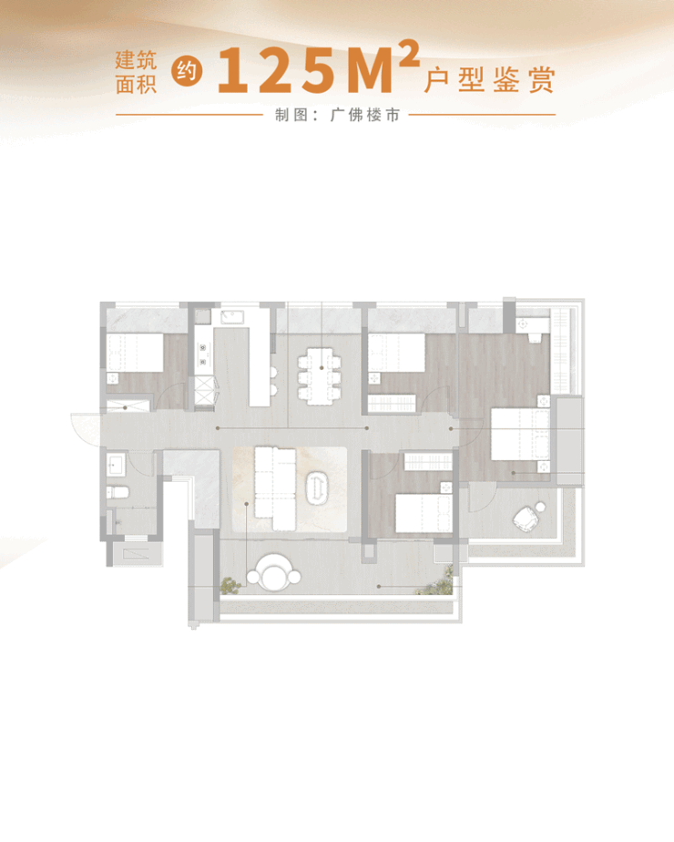 115㎡三房:三开间朝南,客厅连接4米观景阳台,得房率约89%,适合年轻精英家庭;