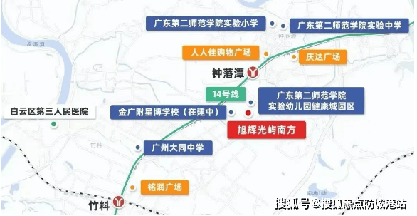 旭辉光屿南方位于发展中心之上,商旅、服务、医疗教育资源逐步完善。教育方面南侧规划 30 班小学及 36 班完全中学,现有钟落潭小学、蟠龙小学等,中学可统筹摇号金广附中学等(具体入读政策以教育局公布为准),白云大学城 13 所高校提供教育氛围。商业 2 公里内享庆达广场、人人佳购物商场,5.5 万㎡天佳商业广场在建中,地铁 2 站达白云东平安华汇。医疗周边有钟落潭医院等基础医疗配套,满足日常健康需求。服务由专业物业提供,小区配建健康运动公园与森林主题园林,菜肉市场一路之隔,未来随产业人口导入,配套将持续升级。
