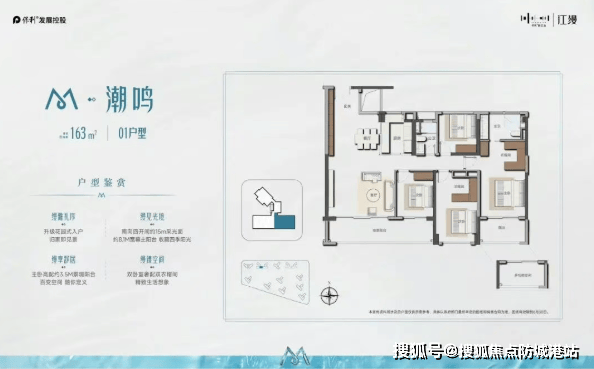 建面约163平方米四房:三开间朝南的设计,让阳光洒满房间的每一个角落。双阳台配置,兼顾了景观与实用功能。主卧套间更带有步入式衣帽间,满足了女主人的时尚梦想。