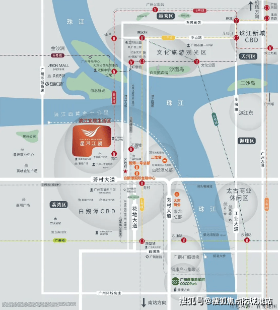 星河江缦地处广州・白鹅潭 CBD(荔湾区芳村大道西滘口大街),交通优势十分明显。项目约 750 米即达 5 号线地铁滘口站,30 分钟就能直达珠江新城,轻松融入城市核心生活圈。而且白鹅潭未来将有超 10 条地铁线路穿过,目前广佛线、地铁 1、5、6、8 号线已开通运营,地铁 10、11、22、25 号线等重要线路也在规划或建设中,未来可覆盖大湾区 1 小时交通生活圈。从项目出发,通过芳村大道 10 分钟直抵荔湾白鹅潭 CBD 核心区域,未来经白鹅潭大道约 4 公里可达白鹅潭 CBD 腹地,如意坊隧道通车后,从内环路直达广珠西线仅需 10 分钟。周边生活配套也十分完善,教育方面,荔湾区鹅潭湾艺术幼儿园、广州新世界凯粤湾实验幼儿园等多所幼儿园临近,项目还属于广州市真光中英文小学学区划分范围,广州四中入学概率高达 95%;医疗上,广州市第一人民医院(全国首批三甲医院)、广州医科大学附属第三医院(大型三甲综合医院)以及钟南山院士带队建设的广州呼吸中心就在附近;商业方面,太古里商业项目已签约进驻白鹅潭聚龙湾片区,含广东美术馆、广东文学馆、广东非物质文化遗产展示中心的 “三馆合一” 项目将于明年落成,步行约 900 米还能到达大型 Shoppingmall 雅诺广场,星巴克、肯德基等品牌一应俱全。