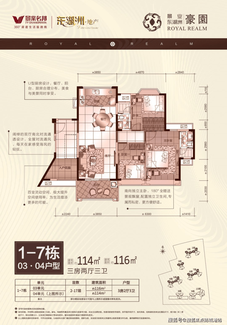 户型面积:主要提供116-121㎡阔景现房