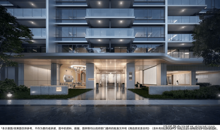 建筑整体设计承袭扎哈•哈迪德的流体美学,利用弧度的变化创造出建筑的光影感,“大面积玻璃”和汤臣一品同款扶手栏杆的搭配,尽呈界面连续、节奏明快的建筑形象,实现流光天幕立面美感。外立面结合窄框窗和大面屏LOW-E玻璃,打造约34.4%-48.9%的窗地比(传统约20%)和约13%-17%的有效通风面积比(传统约5%),实现IMAX全面屏美感,让室内空间拥有更好的采光与观景效果。