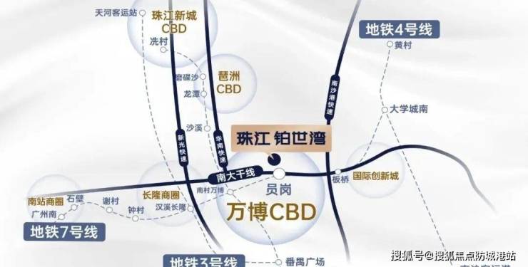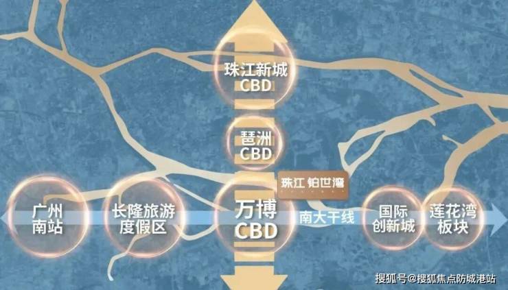 项目地处广州城市中轴&南大干线经济带双中轴交汇点——万博核心,南北CBD塔尖资源一脉尽享。