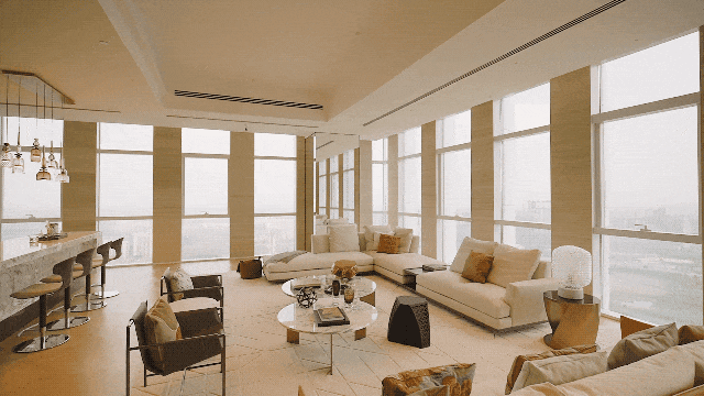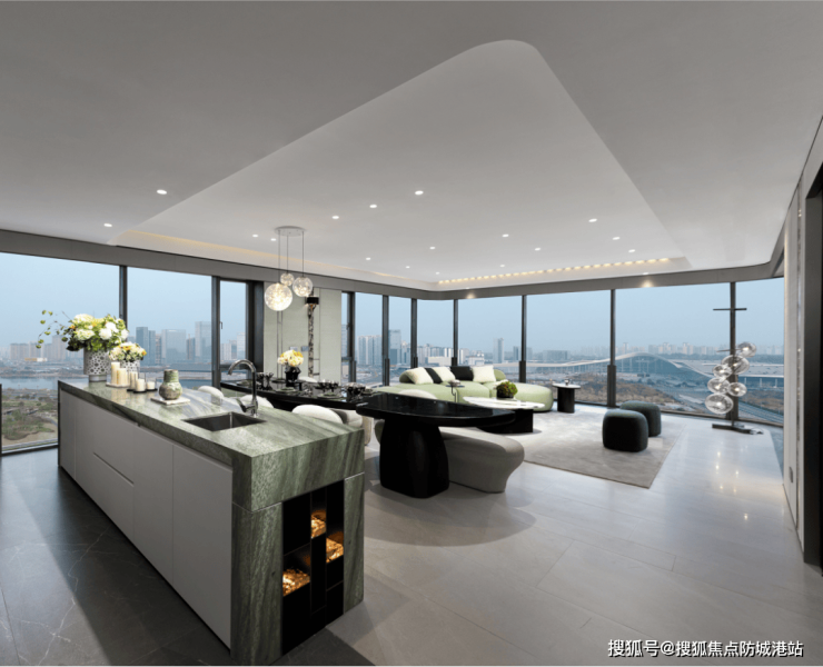 打造270°无柱化环幕全景舱,搭配全落地式飘窗,呈现约8.6米奢阔面宽,采光面与景观面双双超越传统住宅。