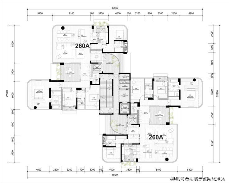 项目面积从200-260㎡均采用了全景舱户型,实现了每个户型接近4个方向的采光和朝向,将户型景观视野又提升了一个档次。