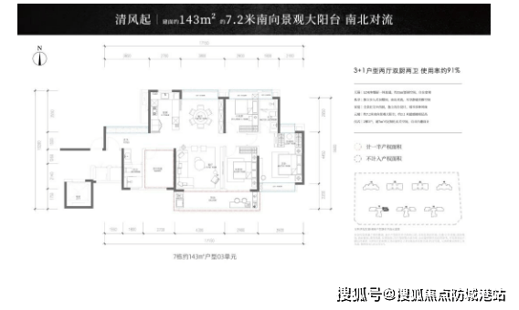 户型设计方面,项目主打“空间革新”,每一款户型都有突出亮点,兼顾空间尺度、采光通风与实用功能,最大化提升居住舒适度。其中,143㎡3+1房作为爆款户型,此次6座新品加推,备受市场追捧,该户型拥有约7.2米南向阔景阳台,南北对流设计,让阳光与清风自然入户,打造通透舒适的居住环境;双厨设计搭配中西独立岛台,预留双开门冰箱位,满足业主多元化烹饪需求,卫浴配备美妆冰箱,细节之处贴合高端人群的生活习惯。
