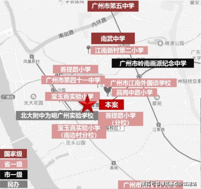 除了对口的昌岗中路小学,项目周边1公里内还有多所省一级学校,包括宝玉直实验小学、菩提路小学沙园校区等。这些学校都是海珠区的优质教育资源,教学水平和办学条件都十分出色,如果业主有其他入学需求,也有更多优质选择。中学方面,项目临近省一级学校广州市第五中学,这是一所具有百年历史的名校,办学成果显著,每年的中考、高考成绩都位居区域前列,能够为孩子的中学教育提供坚实保障。