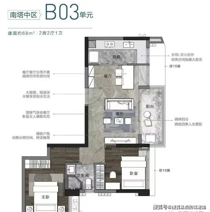 1. 建面约68㎡两房两厅一卫(刚需首选户型):该户型为刚需群体量身打造,布局紧凑合理,无浪费空间,采用横厅设计,动静分区明显,客厅与餐厅相连,提升了空间的通透感与开阔度,让小户型也能拥有宽敞的活动空间。两个卧室均朝南,采光通风极佳,每天都能享受充足的阳光,主卧面积约12㎡,配备观景飘窗,既能增加使用空间,又能欣赏社区园林景观;次卧面积约9㎡,可作为儿童房或书房,灵活实用。厨房采用L型布局,操作空间充足,贴合日常烹饪习惯,卫生间采用干湿分离设计,避免潮湿异味,提升使用舒适度。该户型适合单身贵族、年轻夫妇等刚需群体,总价适中,首付压力小,同时享受核心区的优质配套,性价比极高。