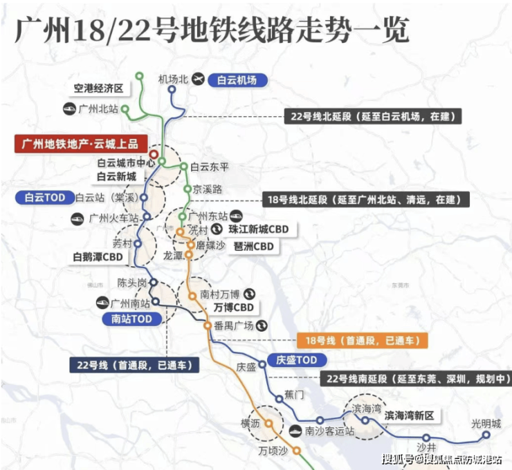 广州地铁·云城上品是白云区少有的【区府+TOD】双核心联动项目。白云区区府规划推动中部板块升级,强化白云城市中心站TOD功能;项目所在的白云城市中心站是18号线和22号线交汇的TOD枢纽,规划20万方商业综合体,集交通、商业、居住于一体。