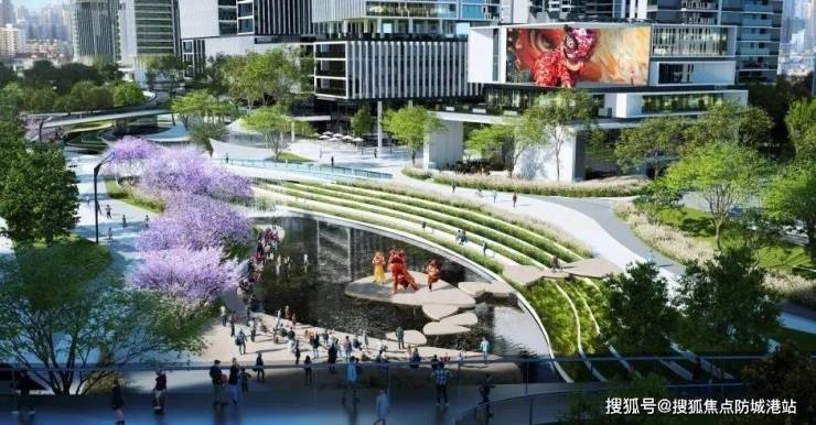 并且商业与城市公园绿轴结合,在商业的模式上创造性打造半开放,半自然的商业消费体验。