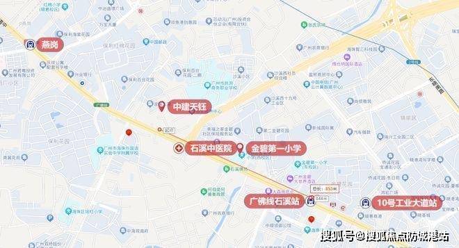 中建天钰地理位置优越,距离地铁石溪站(广佛线&10号线)和燕岗站(广佛线&11号线)步行距离分别为750米和900米,属于双地铁站项目,通勤便捷。自驾出行也十分方便,项目紧邻工业大道,连接城市各主要干道。