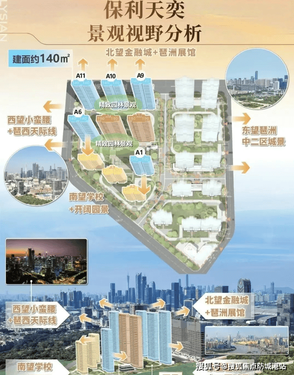 保利琶洲南项目位于广州市海珠区琶洲南区,由保利地产开发,拥有70年的产权。该项目占地面积约为52,000平方米,总建筑面积约138,000平方米,容积率为2.5。整个项目规划了20栋住宅楼,预计提供900户住宅单位。首推的户型面积为120-140-190㎡,主要面向中高端改善型客户群体。