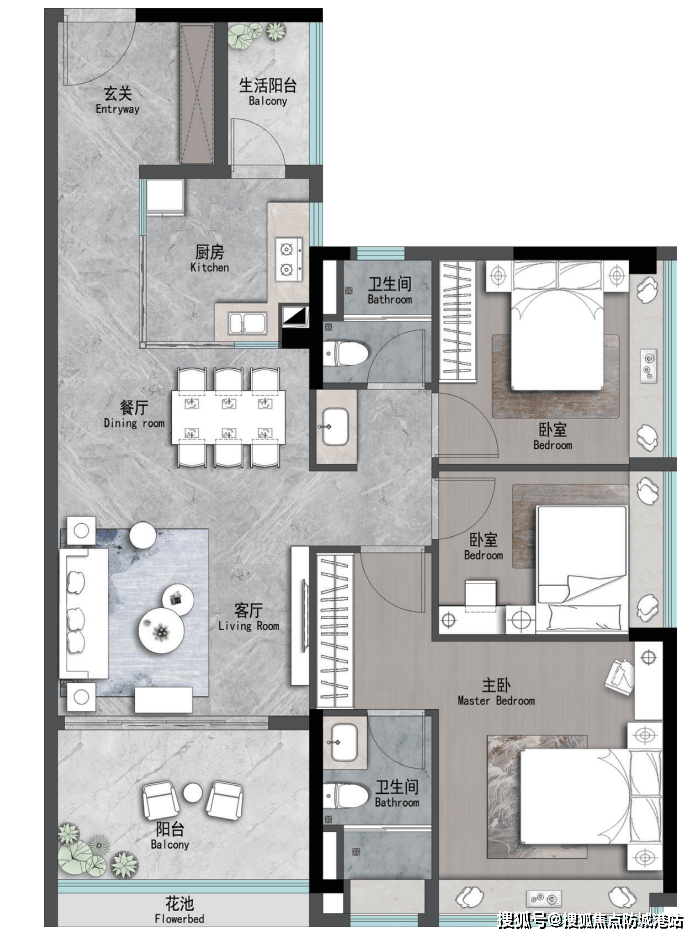 【独家爆料】98㎡三房两卫户型,得房率85%,主卧带270°全景飘窗,客厅开间3.8米(附设计师访谈视频)。