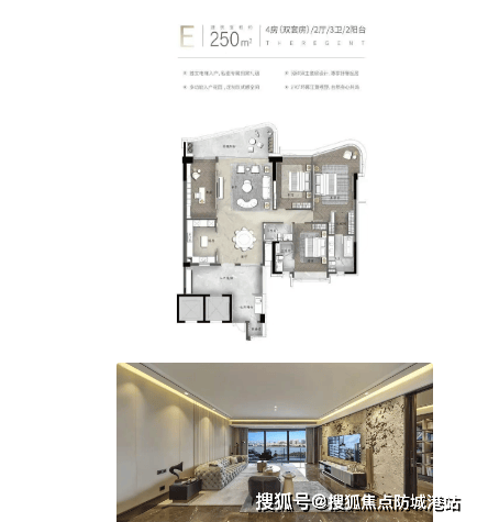 ①其中,两叠的上叠面积为392㎡,花园面积区间约为123-298㎡,天台面积约为93㎡,实用率193-259%;