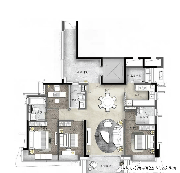 【C户型】约140㎡南向园景大宅,超高性价比,三卧室朝南设计,阔绰双主套房,独立电梯入户,同享两千万豪宅交标配置。