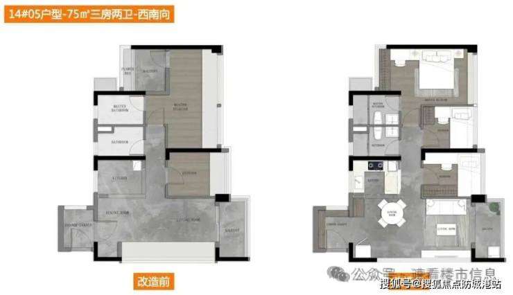 建面约 75㎡三空间两卫户型,是年轻群体主城上车的优选之作。户型做到四开间朝南,全明通透,配备转角玄关与开放式厨房,空间布局合理,功能分区清晰,小面积实现三房两卫全功能设计,超高使用率让每一寸空间都物尽其用,低总价就能入手主城优质三房,轻松实现安家梦想。