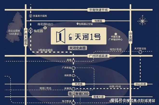 广垦·天河1号地理位置优越,距离地铁3号线梅花园站B出口仅约400米,乘坐地铁两站即可到达广州东站,五站直达珠江新城。此外,项目周边拥有完善的公路网络,包括环城高速、内环路和华南快速等,确保居民能够迅速抵达城市的各个角落。同时,其靠近双5A级景区白云山的独特位置,提供了丰富的自然资源和休闲娱乐场所。