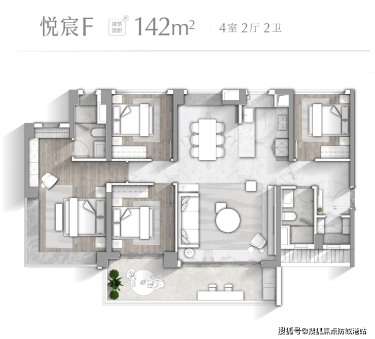 悦宸F户型 建面约142㎡】