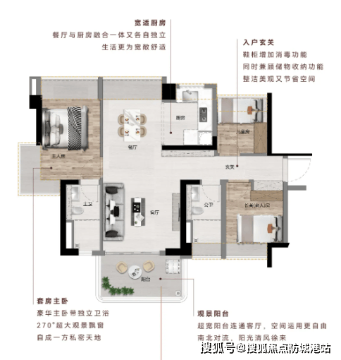 新福港鼎峰江畔总高41层,3梯6户设计,提供建面约88㎡、108㎡、118㎡及129㎡三至四房产品。户型设计以南向及通透为核心,兼顾舒适性与实用性。88㎡三房主打刚改市场,108㎡和118㎡小四房适合改善型家庭,129㎡大四房强调横厅布局及江景视野。部分户型主卧配270°大飘窗,阳台宽敞,观景视野优越。厨房与客餐厅采用U型布局或LDK一体化设计,实现功能动线优化,满足现代家庭生活需求。