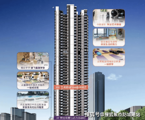 施工方面,项目延续港企高标准,裙楼采用铝板外立面,入户大堂挑高设计,顶部弧形顶面与艺术装置装点现代格调,体现港企精致风格。三层及十四层设有架空层活动空间,包括空中泳池、艺术书吧、童话乐园、运动天地、瑜伽区及棋弈休闲区,为业主提供多样化社交与休闲场景。园林规划方面,项目打造四大园林空间,包括立体园林、前庭广场及生活园林花园,实现归家礼序与高品质景观体验。