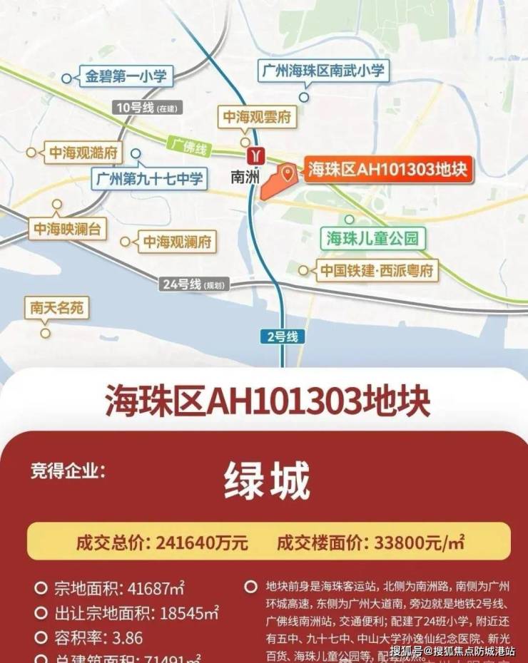 海珠【绿城馥香园】是位于广州市海珠区的一个高品质住宅项目,由知名开发商绿城于2024年12月5日以约24.16亿元总价竞得。该项目占地面积为41687平方米,总建筑面积达到71491平方米,规划有5栋高层住宅楼,提供大约672套房源。