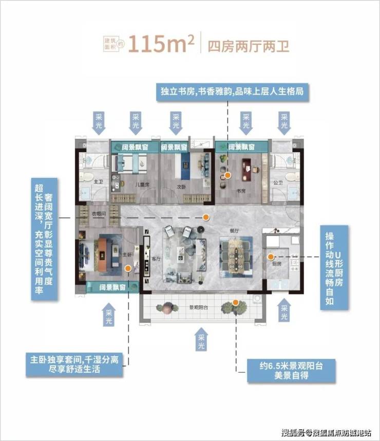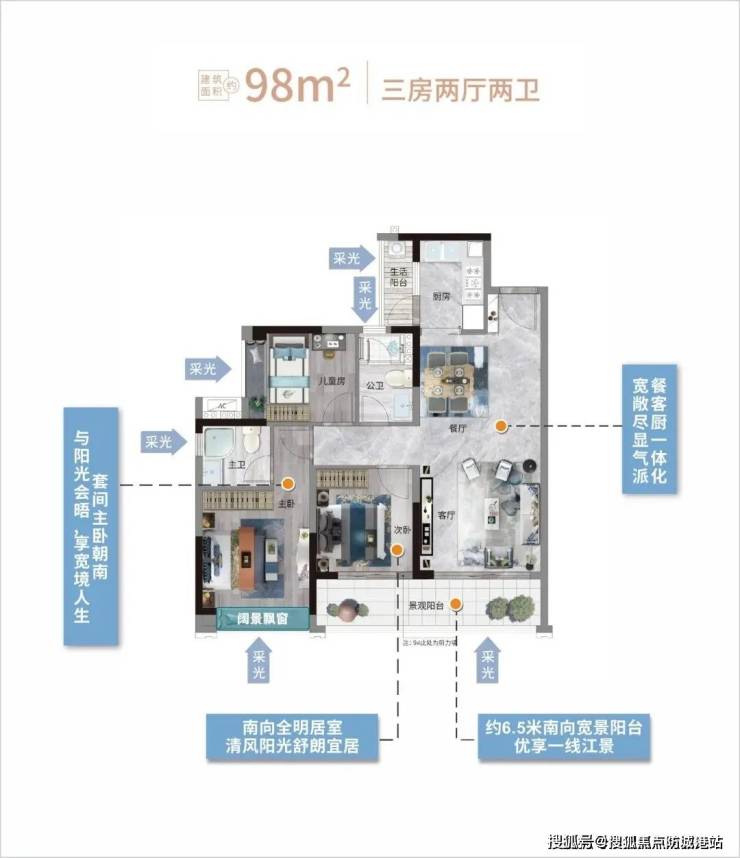 项目目前推售的户型包括建面约98-143平三至四房,纯粹的改善面积段,配上奢阔的空间尺度,一眼就能看到其用心。