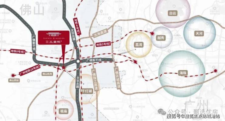 【灯湖中轴 大沥最值得购买的地段】【一线临广】距离广州核心主城区约9KM,通过广佛新干线15分钟快速连接广州环城高速,30分钟直达荔湾滘口,40分钟直达珠江新城。