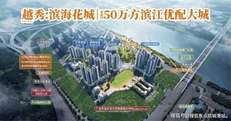 越秀滨海花城位于广州市南沙区的明珠湾板块,具体处于亭角区块。项目总占地面积约为17万平方米,总建筑面积约50万平方米,是一个集住宅、商业和教育设施于一体的大型社区。该项目由越秀地产开发,以打造高品质居住环境为目标,为居民提供一个舒适宜居的生活空间。