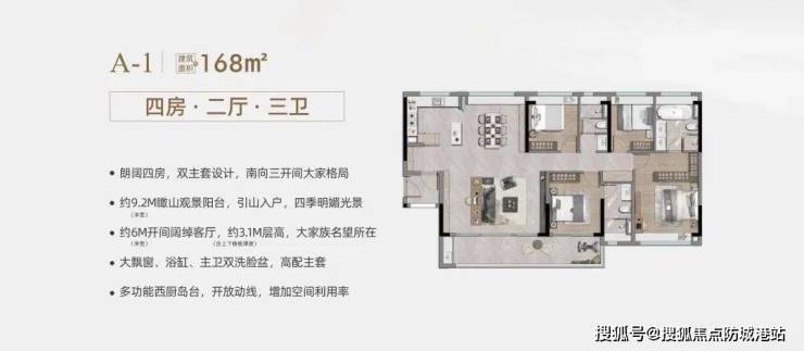 项目主打改善型住宅,户型面积从97平方米到168平方米不等,包括三至四房的设计。每种户型都充分考虑了空间的合理利用与舒适性,保证了充足的采光和通风条件,部分户型还能享受到开阔的山景视野,为业主提供了一个既实用又美观的生活空间。