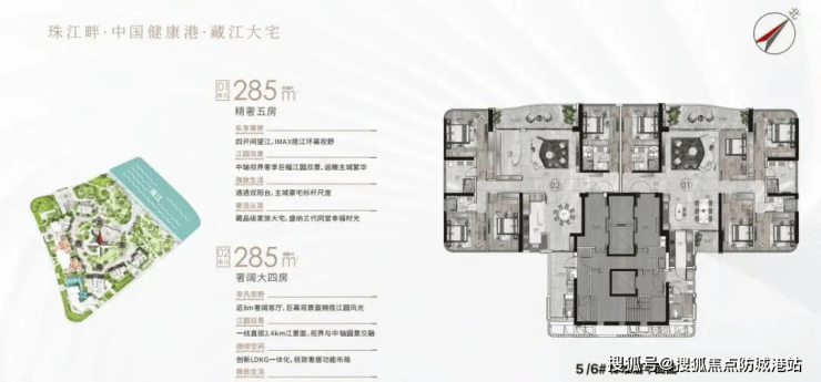 广州幸福湾在售户型以建面约233-285㎡四至五房为主,全部采用东向/东南向设计,最大化享受一线江景资源,搭配3.4-3.6m极致层高,营造出堪比星级酒店套房的居住舒适感。每一款户型都经过精心打磨,在空间布局、采光通风、景观视野等方面实现最优配置,满足顶阶家庭的居住需求。