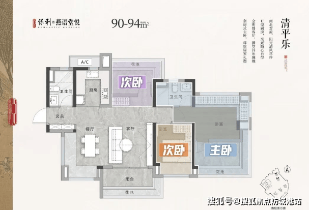 建面约90-94平方米横厅三房两卫