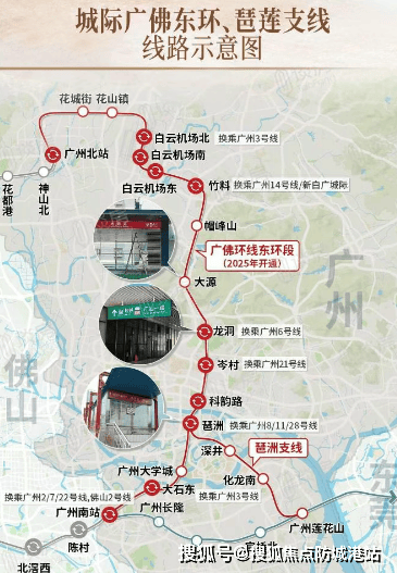 项目距地铁8号线与11号线换乘站——琶洲站直线约800米,步行约900米可达。11号线作为广州首条环线,未来可换乘多达14条地铁线路,高效连接珠江新城、金融城、天河智慧城等核心板块。此外,广州东环城际琶洲站已开通,36分钟直达白云机场北站,强化湾区枢纽联动能力。