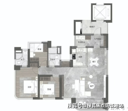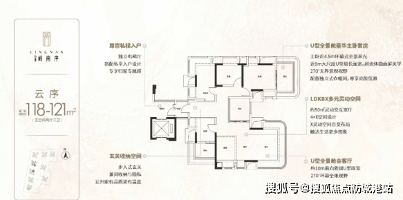 118-121㎡全景舱五空间两厅三卫:配备私梯入户,尊崇归家专属感。