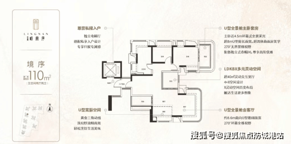 110㎡全景舱五空间两厅两卫:全南向设计,最大化采光面宽与空间感。