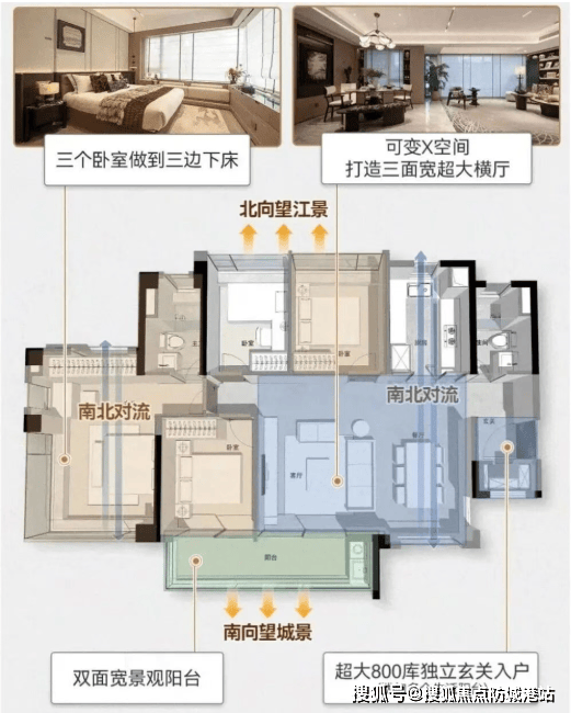 皓悦滨江推出82平方米三房两厅两卫和108平方米四房两厅两卫两种主力户型,所有卧室均采用南向设计,保证了室内的采光和通风效果。特别是108平方米户型,通过打通次卧的方式,可实现接近20种生活方式的表达,极大地提升了居住的灵活性和舒适度。