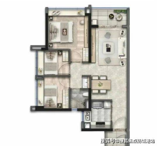 78㎡三室两厅一卫:赠送入户花园,实用率超 94%。卧室全明飘窗,景观视野绝佳。U 型厨房设计,空间宽尺实用。主卫干湿分离,有效提高使用效率。市面罕见的江景小三房,最高可实现三卧瞰江。
