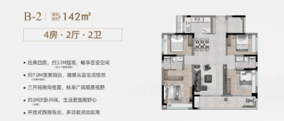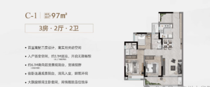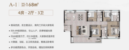 产品类型:建筑面积约97-168㎡精工三至四房
