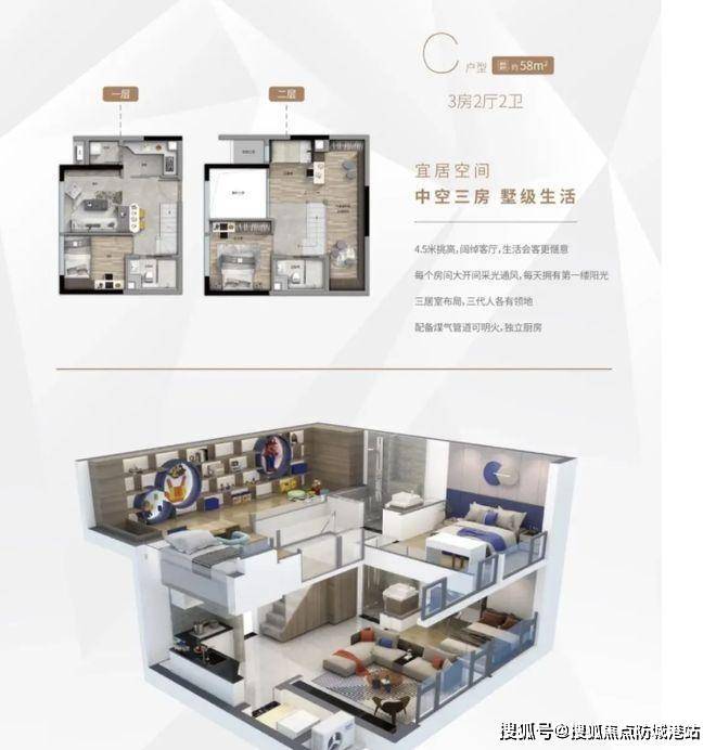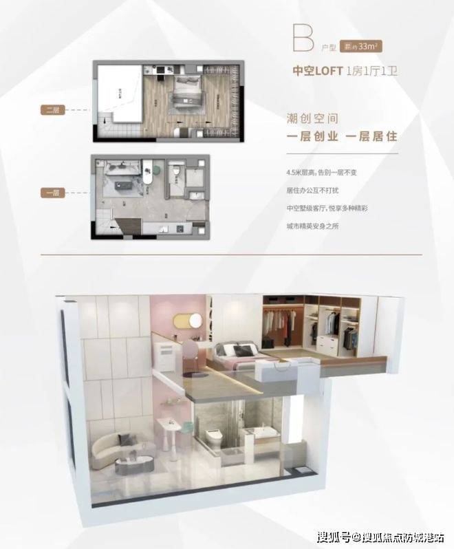 项目主推 33 - 58㎡复式 LOFT,以稀缺的住宅式 LOFT 设计脱颖而出。4.5 米层高的复式结构,为空间利用提供更多可能,增加了居住的层次感与趣味性。部分户型如 58㎡三房,不仅可使用明火,还带有生活阳台,满足日常生活的多样需求。双环通走廊设计有效提升通风采光效果,并且户户单边布局,避免对视,保障了业主的私密性。虽未明确提及得房率,但从整体空间设计来看,注重空间的高效利用,致力于为业主打造舒适且实用的居住空间。