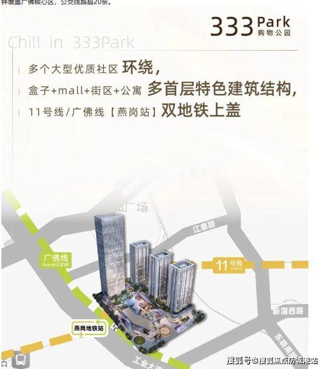 华新方圆 333 交通优势显著,处于双地铁上盖的绝佳位置,与广佛线和 11 号线燕岗站无缝对接,从 D 出口可直接抵达项目。通过地铁网络,7 站即可轻松抵达琶洲,8 站直达珠江新城,高效连接城市核心商务区域,为商务出行和日常通勤提供极大便利。自驾方面,紧邻工业大道,30 分钟内能够覆盖广佛核心区,出行范围广泛。此外,周边公交线路超过 20 条,进一步丰富了公共交通出行选择,满足不同出行需求。